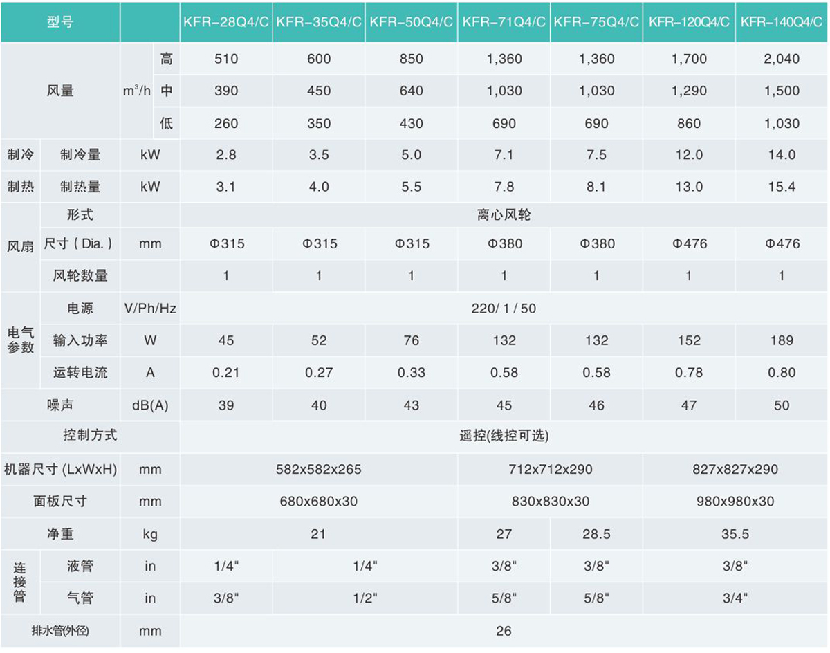 四出風嵌入式空調室內機